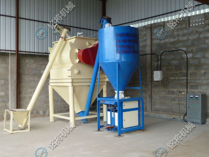 將膩子粉制品原料混入攪拌機后,由閥袋包裝機或開口袋包裝機自動測量包裝。